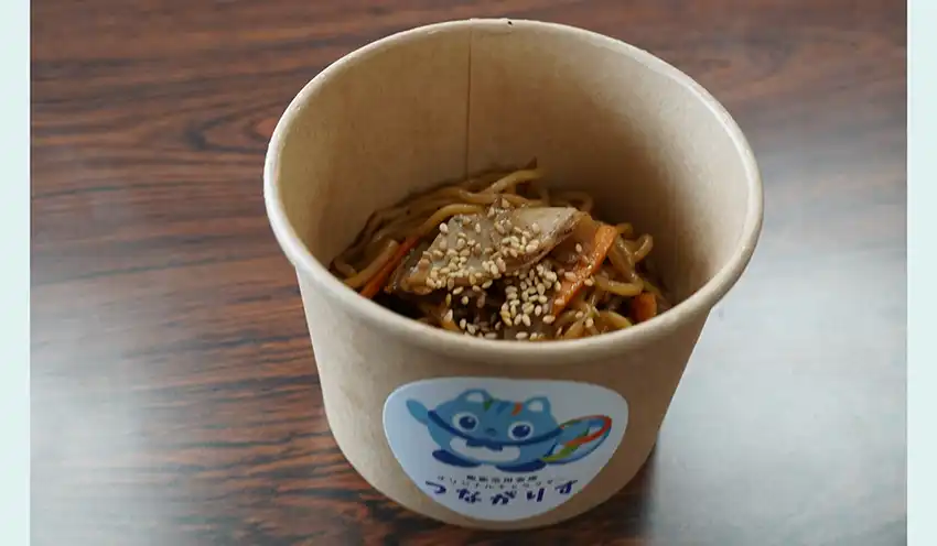 学祭では1日当たり300食限定・1食300円で販売。カップには、同信金のキャラクター「つながりす」のシールを貼った。会場では同信金所沢支店の職員が中心となって調理や販売を手伝った。同店の小野哲支店長は「初日は14時半頃に完売するほど人気だった」という。
