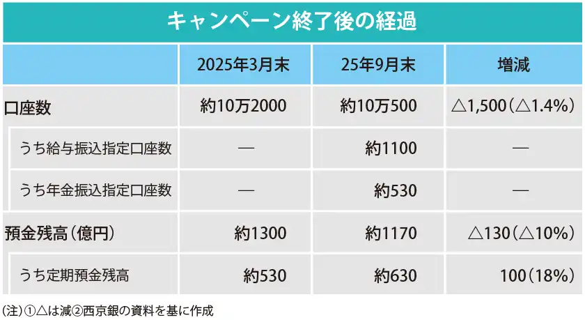 西京銀、半年間で「解約率1.4%」 5万円贈呈の預金キャンペーン
